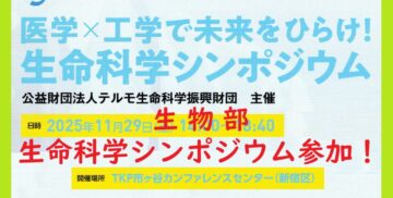 On 4 December, 2025 by SasakiWe’re the Biology Club! We participated in the “Opening up the Future through Medicine and Engineering! Life Science Symposium” (sponsored by the Terumo Life Science Foundation, managed and planned by Leave a Nest), aimed at junior and senior high school students, held on Saturday, November 29th at the TKP Ichigaya Conference Center (Shinjuku Ward). The