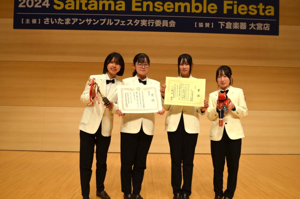 On 6 January, 2025 by SasakiOn December 27th, two teams, a saxophone quartet and a brass quintet, participated in the Saitama Ensemble Festa held at the Saitama Civic Hall Omiya At RaiBoC Hall. Both teams tried their best and received high praise and were awards as follows.
